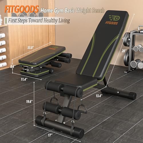 Fitgoods Adjustable Weight Bench for Home Gym, Foldable 700LBS Workout Bench with 9 Backrests, Multi-Purpose Bench Press for Incline Decline Flat with Fast Adjustment (2 resistance bands)